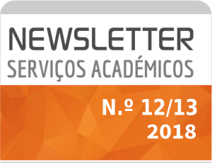 Uma das vertentes estratégicas dos Serviços Académicos é otimizar a disponibilização de informação relativa aos prazos e procedimentos académicos, da forma mais eficaz e acessível. Com esta premissa é disponibilizada online a primeira Newsletter de 2018 que publica numa só a 12ª Newsletter (1.º Trimestre de 2018) e a 13.ª (2.º Trimestre 2018): Newsletter12/13SAC - janeiro | fevereiro | março | abril | maio | junho - 2018